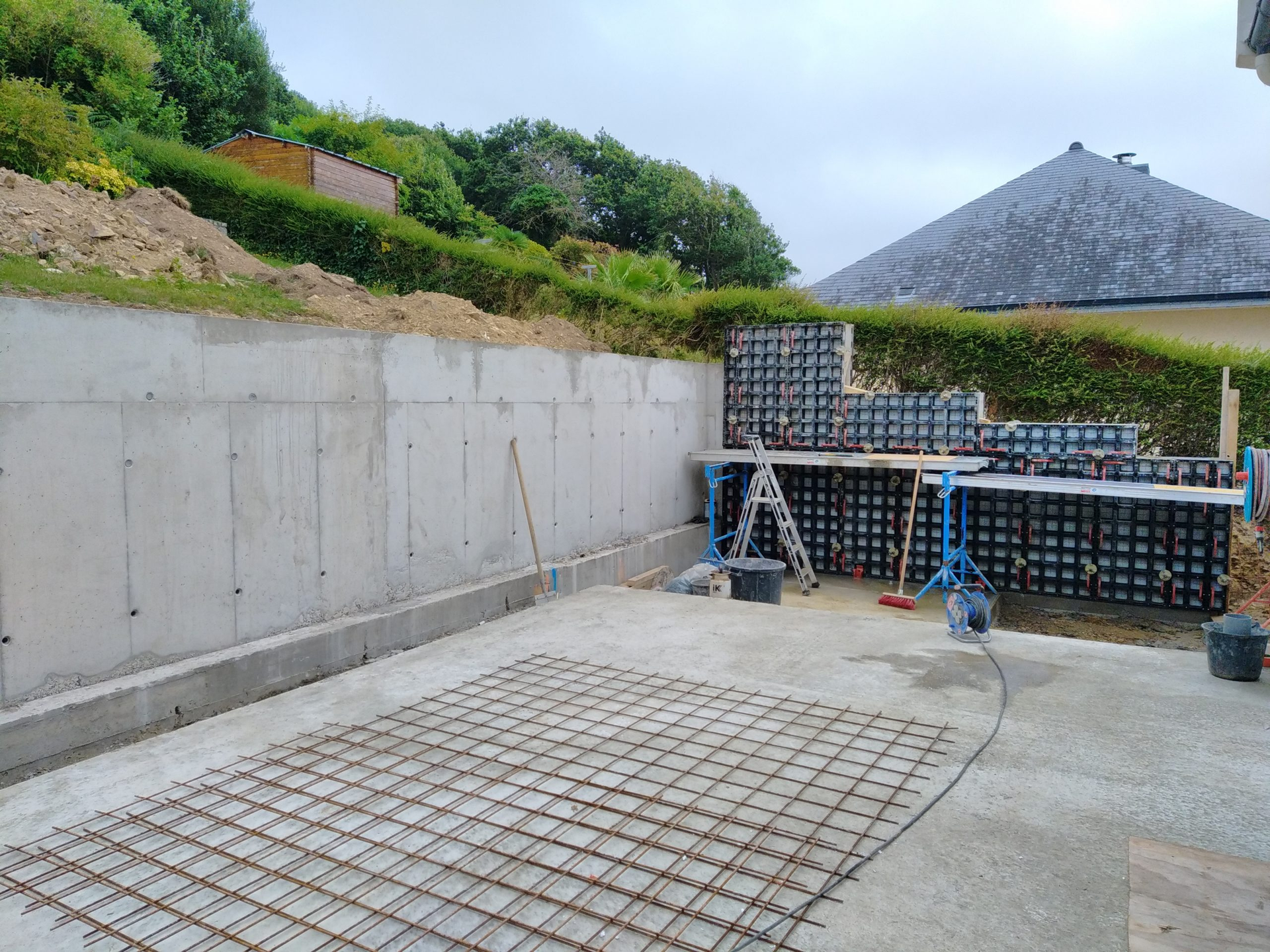 Réalisation d'un mur de soutènement de grande hauteur pour un projet d'aménagement.